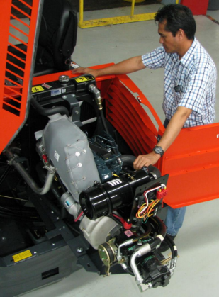 Xe quét được trang bị động cơ của Kubota, động cơ 4 thì, 4 xylanh thẳng hàng, làm mát bằng nước. Công suất max 26,5 KW tại vòng quay trục khủy 3000 vòng/phút. Động cơ có thể quay ra bên ngoài được nên rất tiện cho việc bảo dưỡng sửa chữa.