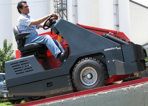Xe quét rác công nghiệp Powerboss Armadilo 9X dùng động cơ Diesel. Loại xe quét rác chuyên dùng để làm sạch trong các khu vực của nhà máy xi măng, sản xuất sắt thép, kho bãi, bến cảng.....vv những nơi có lượng bụi cao.
