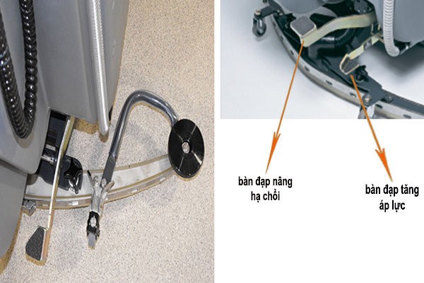 Tuy nhiên, nên lưu ý những dòng máy kém chất lượng KHÔNG có bàn đạp nâng hạ chổi. Vì vậy, khi di chuyển máy phải dùng nhiều lực để đè mạnh phần đuôi của máy xuống, mới có thể di chuyển, gây khó khăn cho người vận hành, mau bị mài mòn